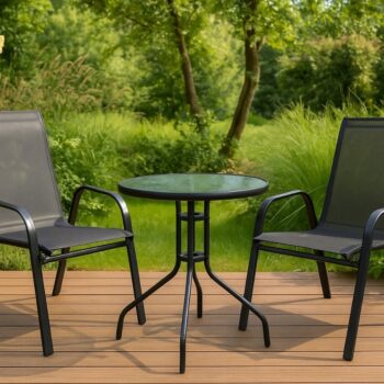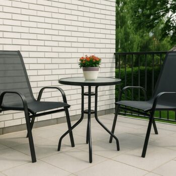 ✅ 5 mm debelo kaljeno steklo – sodoben videz in vzdržljivost Mizna plošča je izdelana iz 5 mm debelega kaljenega stekla , ki ji daje eleganten videz, poleg tega pa je zelo odporna na mehanske poškodbe in praske. Gladka površina omogoča enostavno čiščenje in vsakodnevno uporabo. ✅ Odpornost na vremenske vplive – pohištvo, zasnovano za vrt Garnitura je izdelana iz materialov, odpornih na UV-sevanje in spreminjajoče se vremenske razmere. Na soncu ne zbledi , konstrukcija pa ohrani svojo stabilnost in estetski videz tudi po sezoni intenzivne uporabe na prostem. ✅ Trdna, a lahka železna konstrukcija Okvirji mize in stolov so izdelani iz prašno barvanega železa , kar zagotavlja vzdržljivost in zaščito pred korozijo. Lahka konstrukcija omogoča enostavno premikanje garniture na katero koli lokacijo.