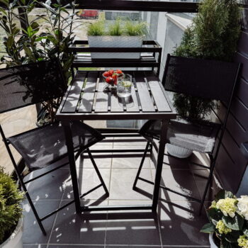 - Kompaktne dimenzije: Ta komplet je zasnovan za majhne prostore in se odlično prilega balkonom in terasam, ne da bi pri tem ogrozil stil.