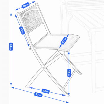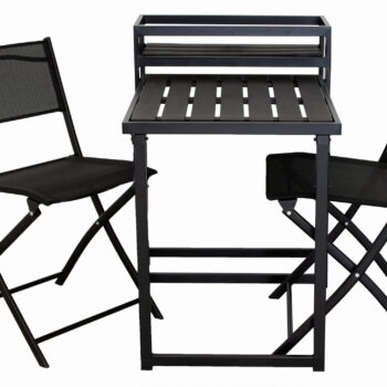 Predstavljamo vam eleganten in praktičen komplet zložljivega balkonskega pohištva, idealnega za majhne prostore, kot so balkoni, terase in vrtovi. Ta komplet, ki vključuje kompaktno mizo in dva udobna stola, je popolna kombinacija funkcionalnosti in modernega dizajna. Njegova zložljiva zmogljivost omogoča enostavno shranjevanje in transport, s čimer se kar najbolje izkoristi vsak centimeter prostora.