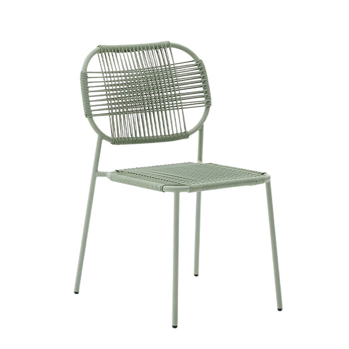 Ročno izdelana sintetična vrv, odporna proti UV-žarkom, v svežem turkiznem odtenku, v kombinaciji z nogami iz pocinkanega jekla, prinaša čar in eleganco v vsak kotiček – pa naj bo to vrt, terasa ali pokrit balkon.