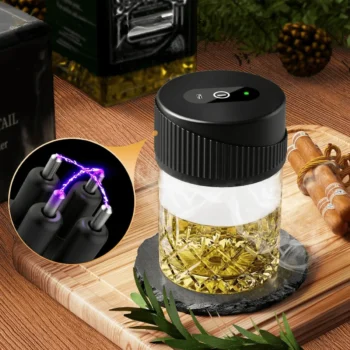 Enostavna uporaba – Ni vam treba biti profesionalni natakar: dajte čips, pritisnite gumb, vklopite prižig in v nekaj sekundah uživajte v aromatičnem dimu. Združljivo z večino kozarcev.