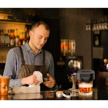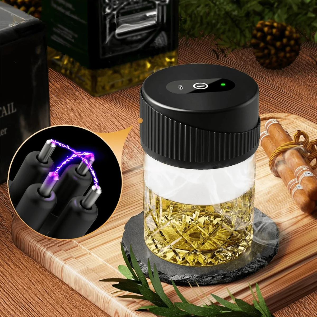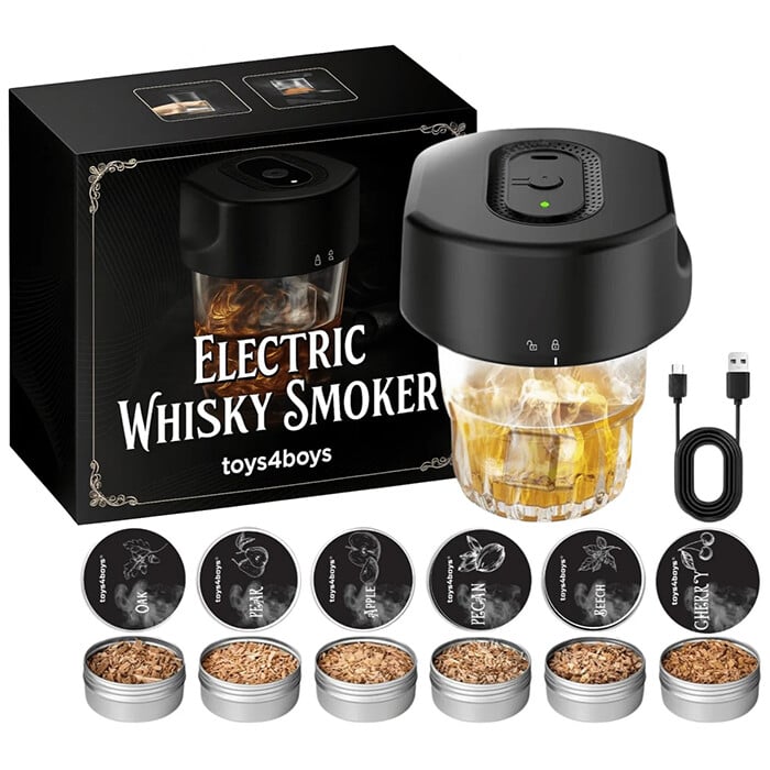 Uživajte v okusu svoje najljubše pijače v povsem novi luči! Električni kadilnik viskija je nepogrešljiv pripomoček za vsakega ljubitelja viskija. To je preprost način, da vsak kozarec vaše najljubše pijače naredite izjemen in prefinjen. Naravni lesni sekanci zagotavljajo bogat, globok dimljen okus, ki vam omogoča, da vsakemu požirku dodate prefinjeno aromo.