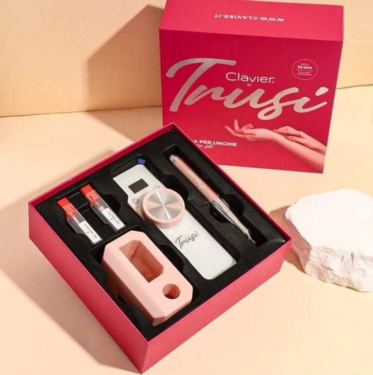 Profesionalna brezžična pilica za nohte Trusi, majhna in popolne oblike, zavzame minimalno delovnega prostora in je enostavna za prenašanje. Zasnovano tako za profesionalce kot za ljubitelje lepih nohtov, ki potrebujejo pomočnika pri manikuri in pedikuri. Ima 35.000 vrtljajev (desno in levo) in moč 65 W, je ultra tiha in deluje do 8 ur z enim polnjenjem.