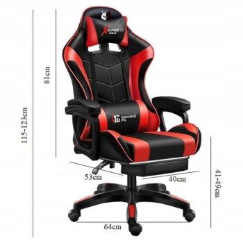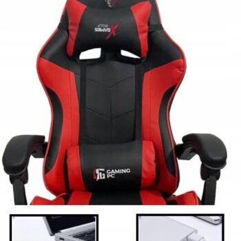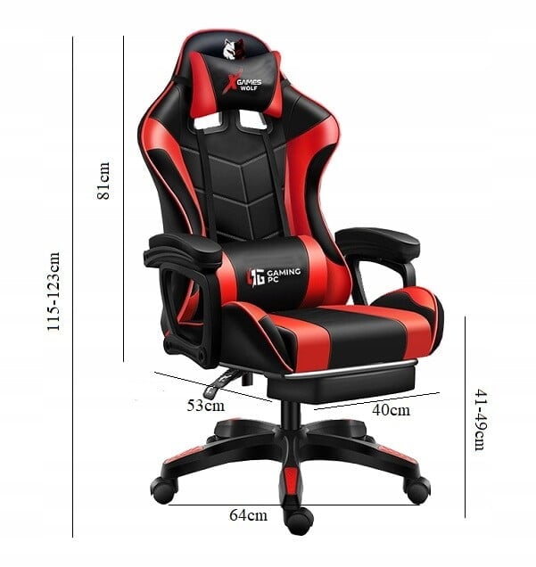 Igralni stol – rdeči volk Igralni stol je nepogrešljiv za ljudi, ki iščejo funkcionalen in sodoben stol, ki nudi udobje med urami igranja ali dela. Zaradi stopnje nagiba je odličen tudi za sproščanje, gledanje televizije ali celo spanje. Profiliran sedež v obliki školjke, nasloni za roke in dva vzglavnika pod glavo in hrbtenico zagotavljajo udobje pri uporabi stola. Nastavljivost višine sedeža in nagiba naslonjala z možnostjo zaklepanja. Zložljiv naslon za noge, skrit pod sedežem, bo olajšal utrujene noge. Fotelj je v športnem slogu in bo zaradi popolne nastavitve odlična izbira tako za otroško sobo kot za odraslo osebo. Paket vsebuje: