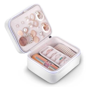 Praktična mini škatlica za nakit ni le za vsakodnevno uporabo, ampak je idealna tudi za potovanja. Dimenzije (dolžina/višina/širina): 11,3 × 6,2 × 9,5 cm
