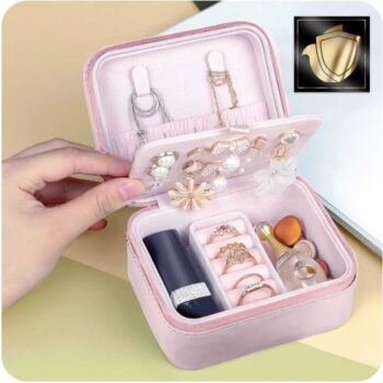 Praktična mini škatlica za nakit ni le za vsakodnevno uporabo, ampak je idealna tudi za potovanja. Dimenzije (dolžina/višina/širina): 11,3 × 6,2 × 9,5 cm