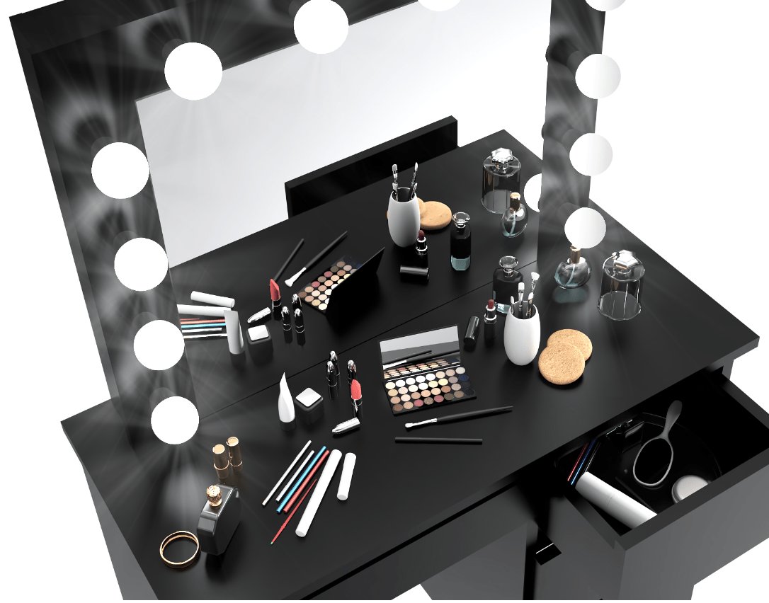 Pozabite na slabo osvetljen obraz med ličenjem. Počutite se kot prava hollywoodska zvezda z nevtralno svetlobo 12 popolnoma usklajenih žarnic. Uporabite 4 prostorne predale za lepo shranjevanje vseh vaših stvari.