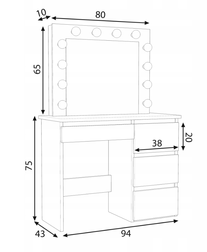Izdelano iz visokokakovostne 18 mm laminirane plošče Ogledalo z 12 nevtralno belimi LED žarnicami ✅ CE certifikat Dimenzije: dolžina 94 cm x višina 140 cm x globina 43 cm
