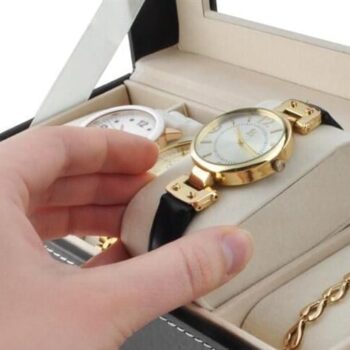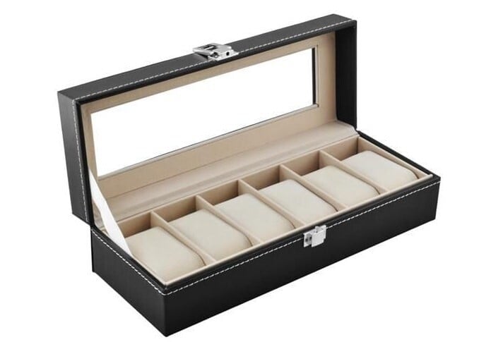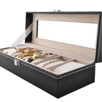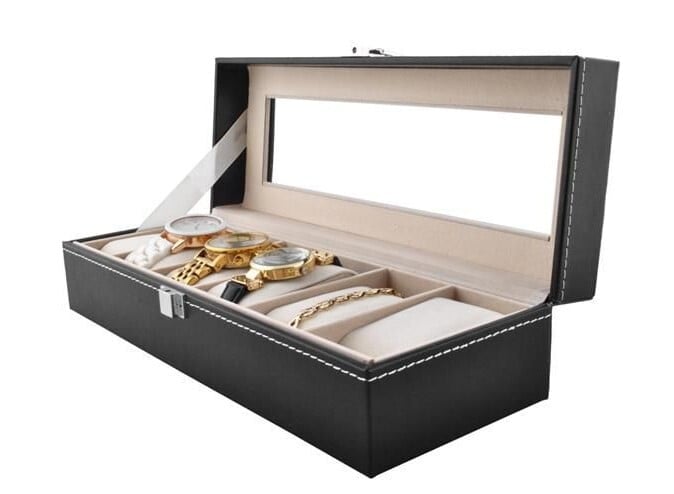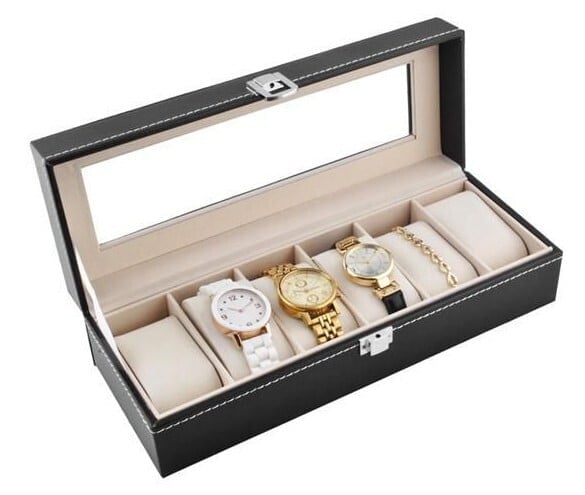 Eleganten vložek za shranjevanje in razstavljanje ur, zapestnic in drugega nakita. Okvir ima šest predalov z zamenljivimi vložki.