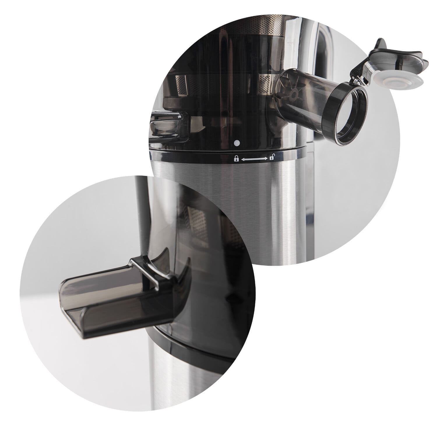 Dvosmerno delovanje stiskalnice omogoča, da kolesce za pomik premaknete nazaj, ko se na primer v njej pomotoma zatakne koščica sadja. To bo učinkovito rešilo težavo, ne da bi bilo treba napravo razstaviti!