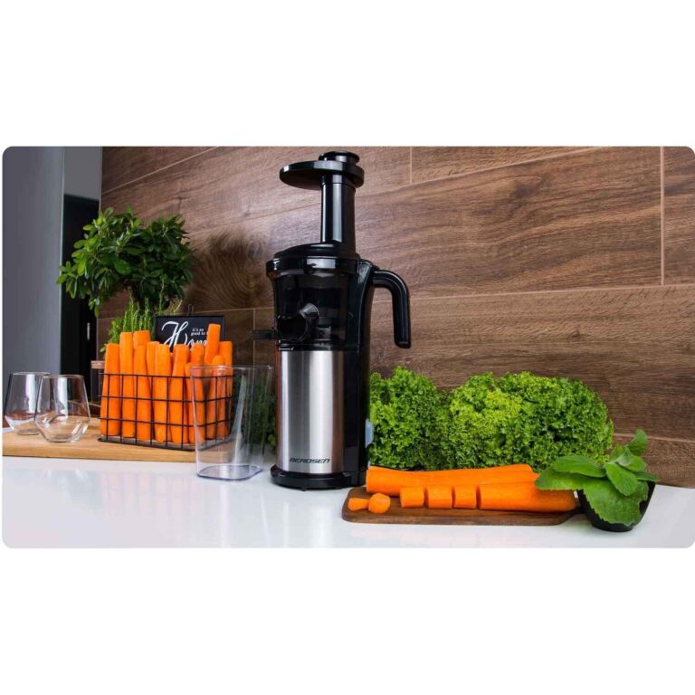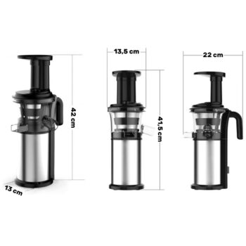 Nizkohitrostni motor s 45 vrtljaji na minuto zagotavlja, da med sočenjem temeljito iztisne sok iz zelenjave, sadja in zelišč.
