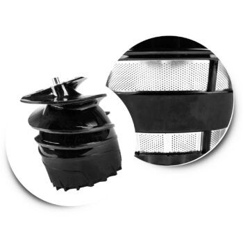 - Edinstvena zasnova polža – učinkovitejše stiskanje pri nižjih hitrostih