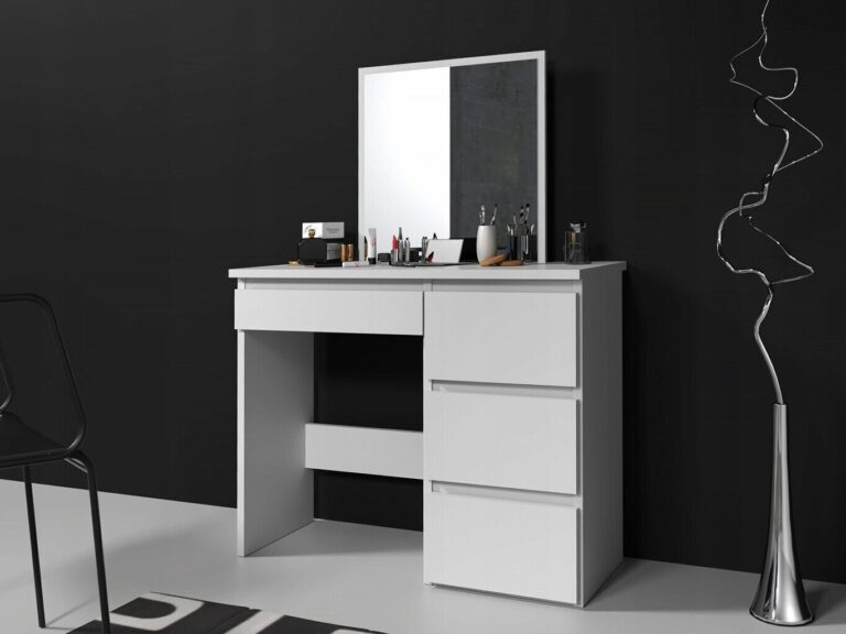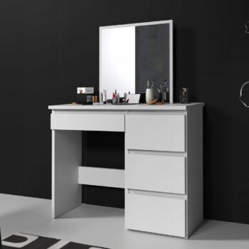 Popolna mešanica funkcionalnosti in stila Dodajte kanček elegance svoji spalnici ali lepotnemu prostoru. Ta bela kozmetična mizica izžareva prefinjenost in se popolnoma prilega vsaki notranjosti. Veliko ogledalo za popoln videz Ogledalo z optimalno višino omogoča enostavno nanašanje ličil in izvajanje dnevnih lepotnih ritualov, kar vam zagotavlja najboljšo lepotno izkušnjo. ️ Organizacija na dosegu roke