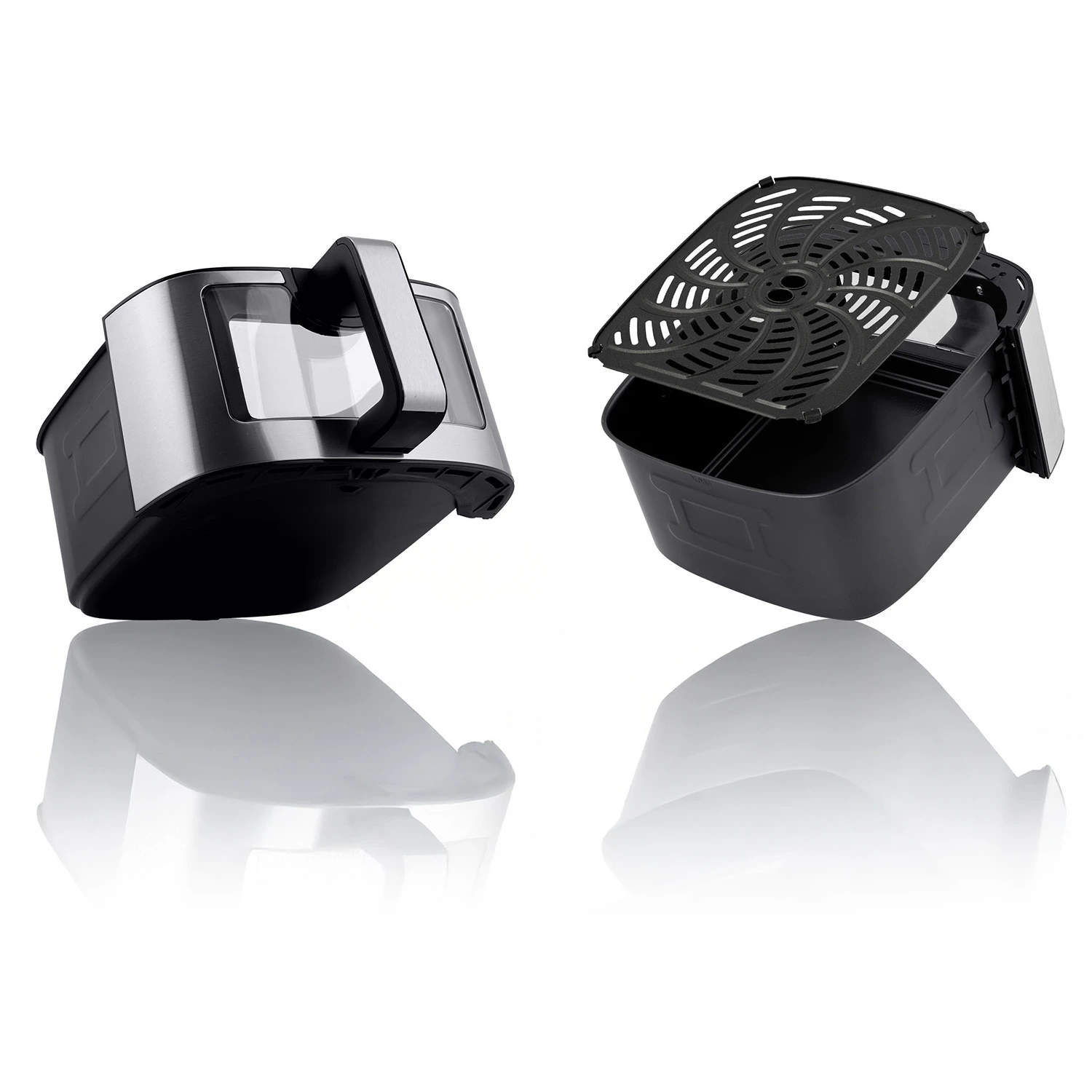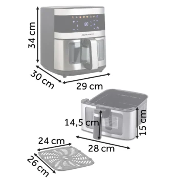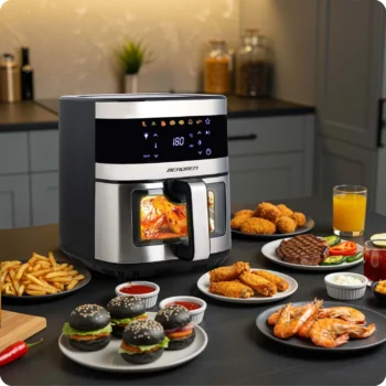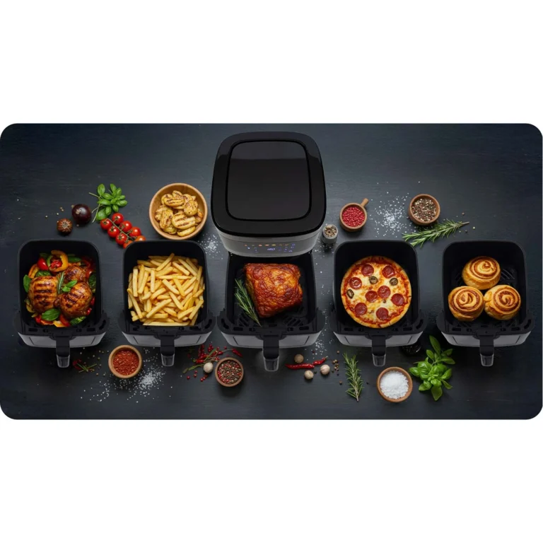 ⭐Cvrtje z malo maščobami, polno okusa Zahvaljujoč naprednemu kroženju vročega zraka boste dobili hrustljavo hrano brez veliko olja. Sočna notranjost in zlata skorjica – brez žrtvovanja! ⭐Prostornina 9,1 l Dovolj za pripravo večerje za vso družino ali velike porcije prigrizkov za srečanje s prijatelji. ⭐7 programov + funkcija »Moji najljubši« Samodejne nastavitve, zasnovane za: pomfrit, piščanca, pico, ribe, zrezke, torte in kozice. En gumb in naprava sama izbere temperaturo in čas. ⭐Zaslon na dotik z LED zaslonom Intuitivno upravljanje – le rahlo se dotaknite ikone. Vgrajena osvetlitev omogoča preverjanje posode, ne da bi dvignili košaro. ⭐Moč 1700 W Hitro segrevanje in enakomerno cvrtje skrajšata čas priprave obroka. ⭐Košara z okencem in LED osvetlitvijo Spremljajte postopek brez odpiranja – vidite lahko, kako se hrana zapeče, ne da bi pri tem uhajala toplota. ⭐Funkcija zakasnjenega zagona in opomnik za vrtenje Prednastavljeni zagon vam omogoča načrtovanje priprave obroka, signal pa vas bo opomnil, kdaj je čas, da jed obrnete.