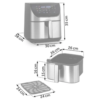 Dovolj za pripravo: ✅ večerje za vso družino, ✅ velike porcije krompirčka za prijatelje za filmski večer, ✅ sočnega celega piščanca, ✅ ali več porcij zelenjave, ki jih lahko spečete naenkrat.