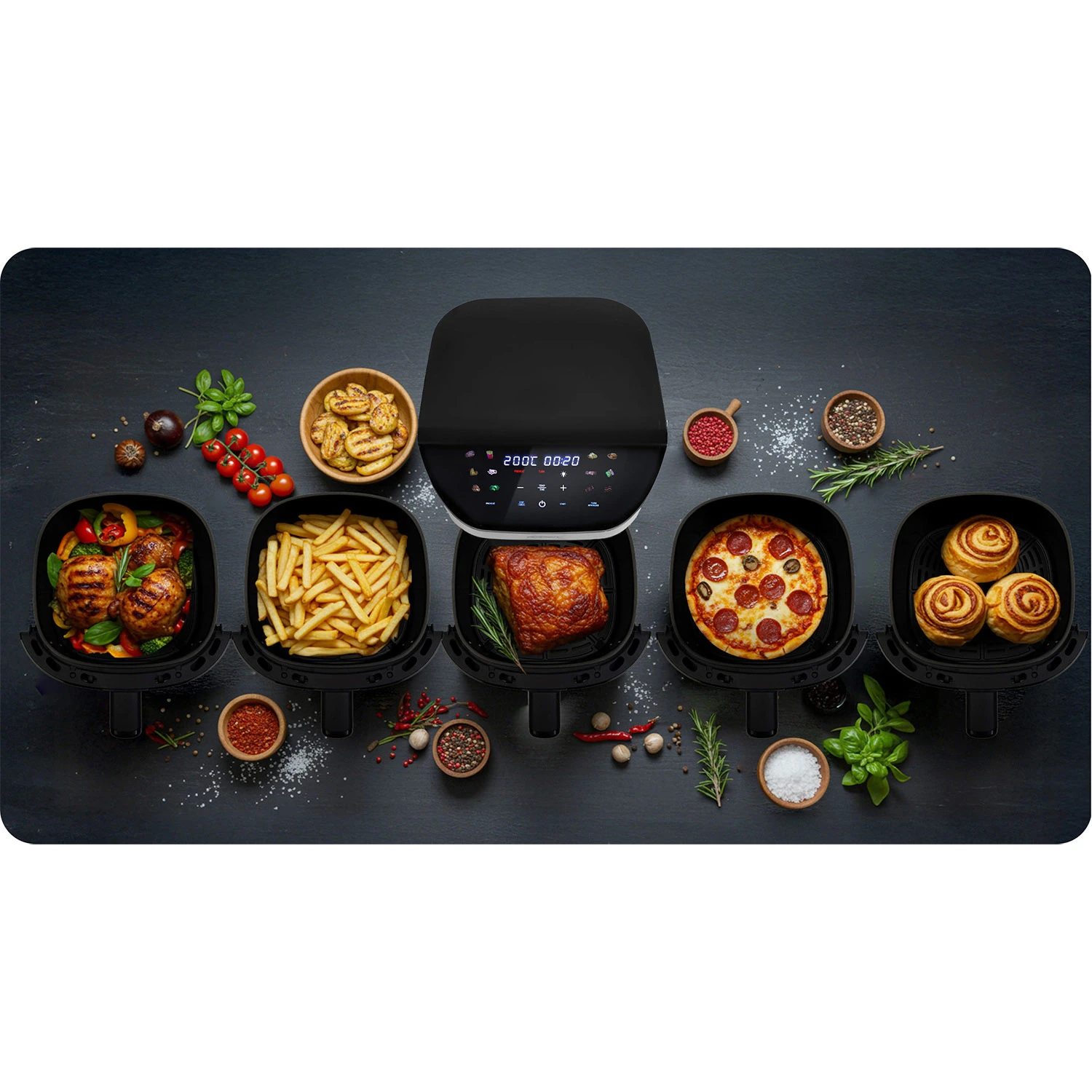 ✅ Tradicionalna cvrtnica – hrustljavo cvre hrano brez olja. ✅ Pečica – peče meso, zelenjavo, torte in pico. ✅ Opekač kruha/žar – odličen za praženje peciva ali toasta. ✅ Električni žar – jedem daje okusno rjavo barvo. ✅ Sušilnik hrane – omogoča sušenje zelenjave, sadja in zelišč. ✅ Grelec – hitro pogreje že pripravljene jedi.