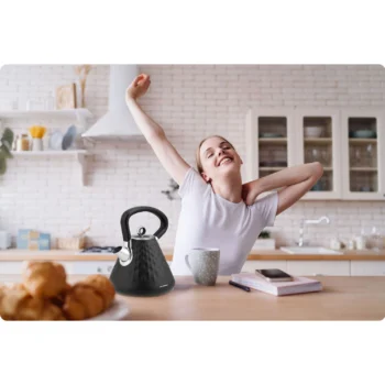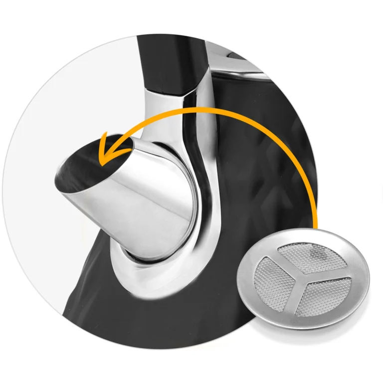 Grelnik vode ima kovinski filter proti vodnemu kamnu, ki ga je mogoče odstraniti in očistiti ali zamenjati z novim. Zahvaljujoč njemu v vašem čaju nikoli ne boste našli usedlin vodnega kamna.