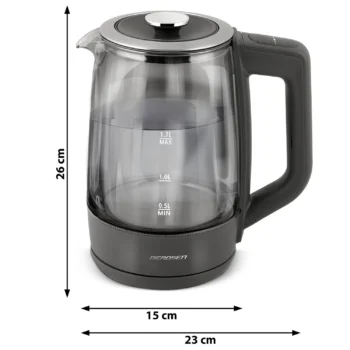 Grelnik vode z zaslonom na dotik. Borosilikatno steklo.