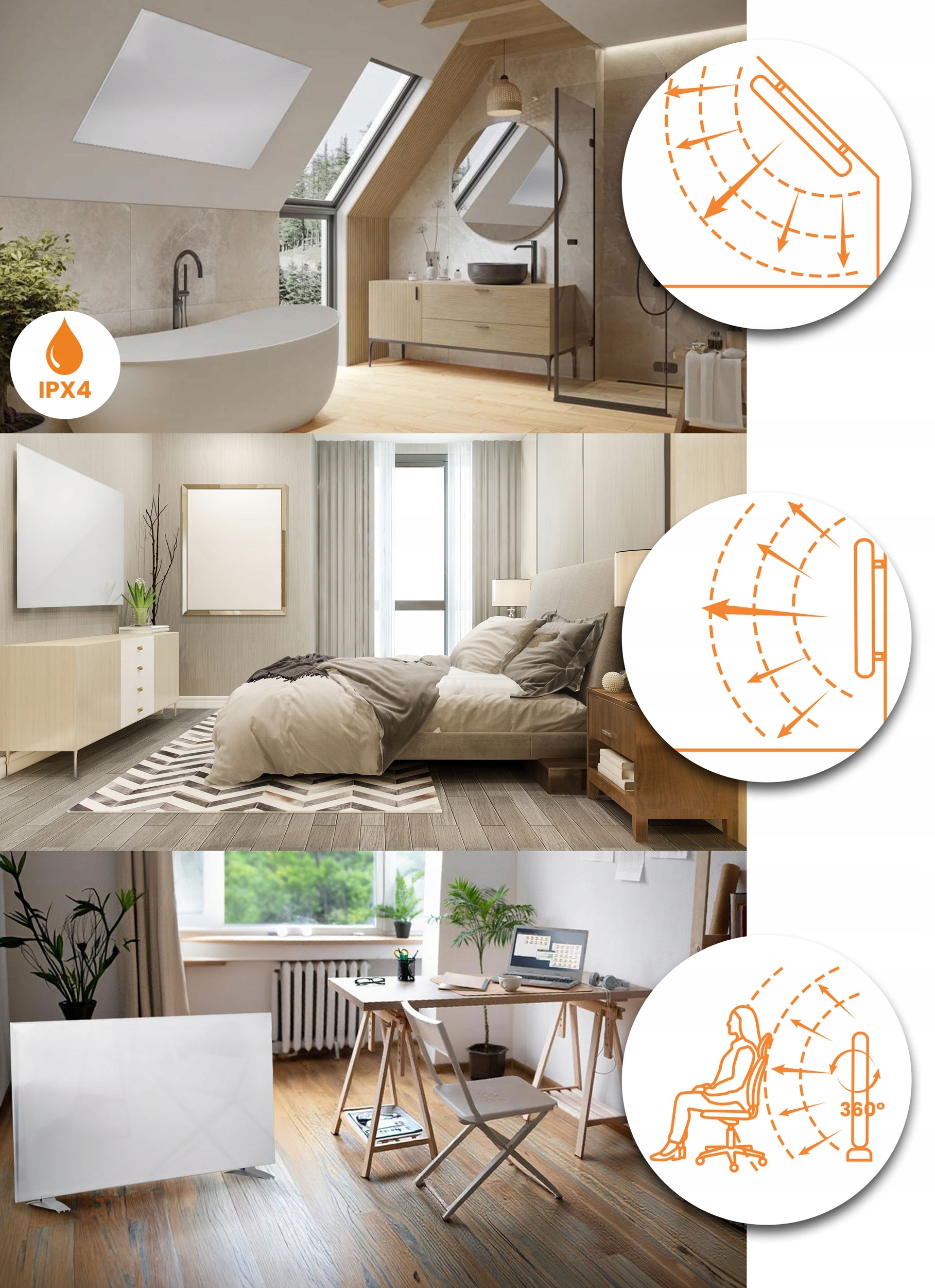 3 v 1 – možna je stenska, stropna in prostostoječa montaža, panel se bo podal v vsako notranjost – od spalnice do pisarne. Napredna tehnologija ogrevanja z ogljikovimi kristali (daleč infrardeče sevanje) – hitro in učinkovito ogreva prostore brez izsuševanja zraka. Toplota, ki jo boste občutili kot sončno svetlobo! Varnost in udobje: dvojni sistem zaščite pred pregrevanjem. Minimalistična oblika + vodoodpornost IPX4 – idealno za kopalnice in prostore z visoko vlažnostjo.