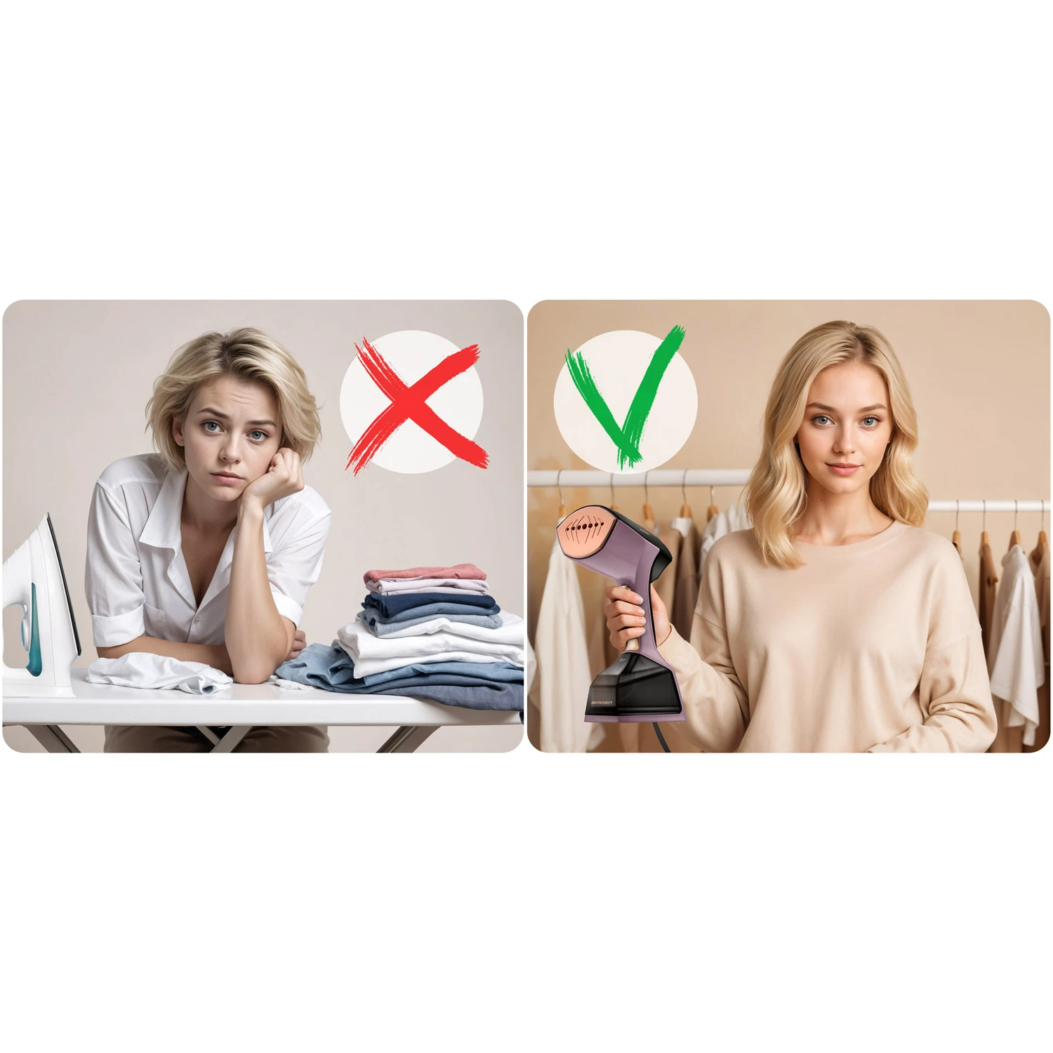 Poslovite se od dolgočasnega in zamudnega opravila priprave likalne deske in segrevanja likalnika. Zlikajte oblačila naenkrat, kar na obešalniku!
