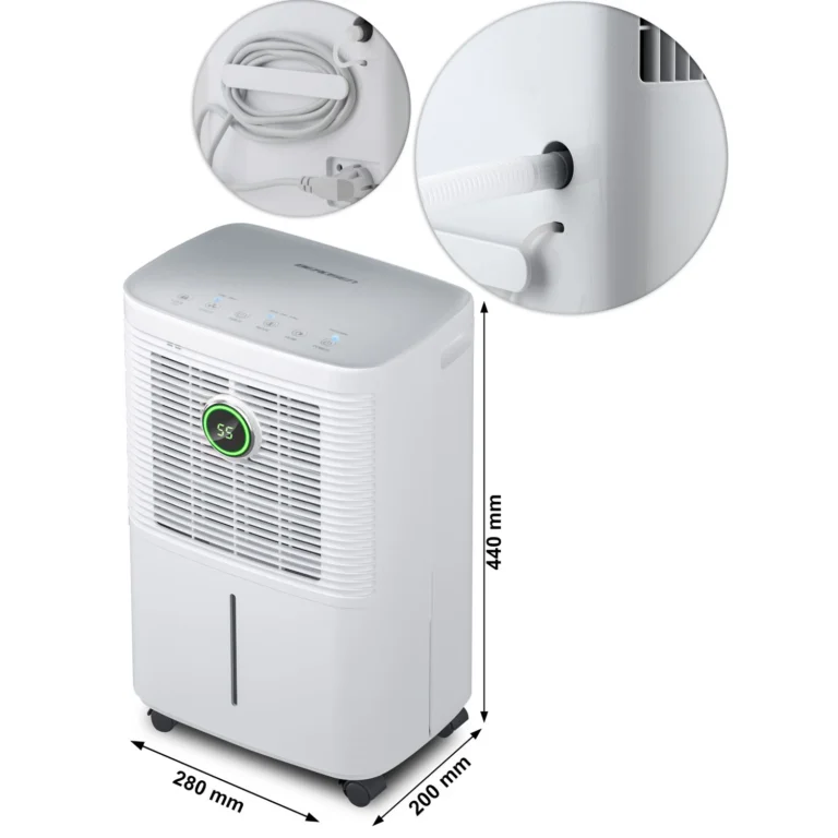 - Zmogljivost razvlaževanja [l/24h]: 12 (pri 80 % vlažnosti) ali 16 (pri 90 % vlažnosti)
