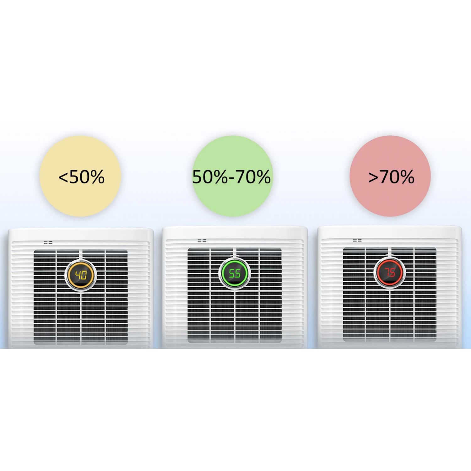 - Zelena lučka: 50 % relativne vlažnosti ≤ vlažnost ≤ 70 % relativne vlažnosti