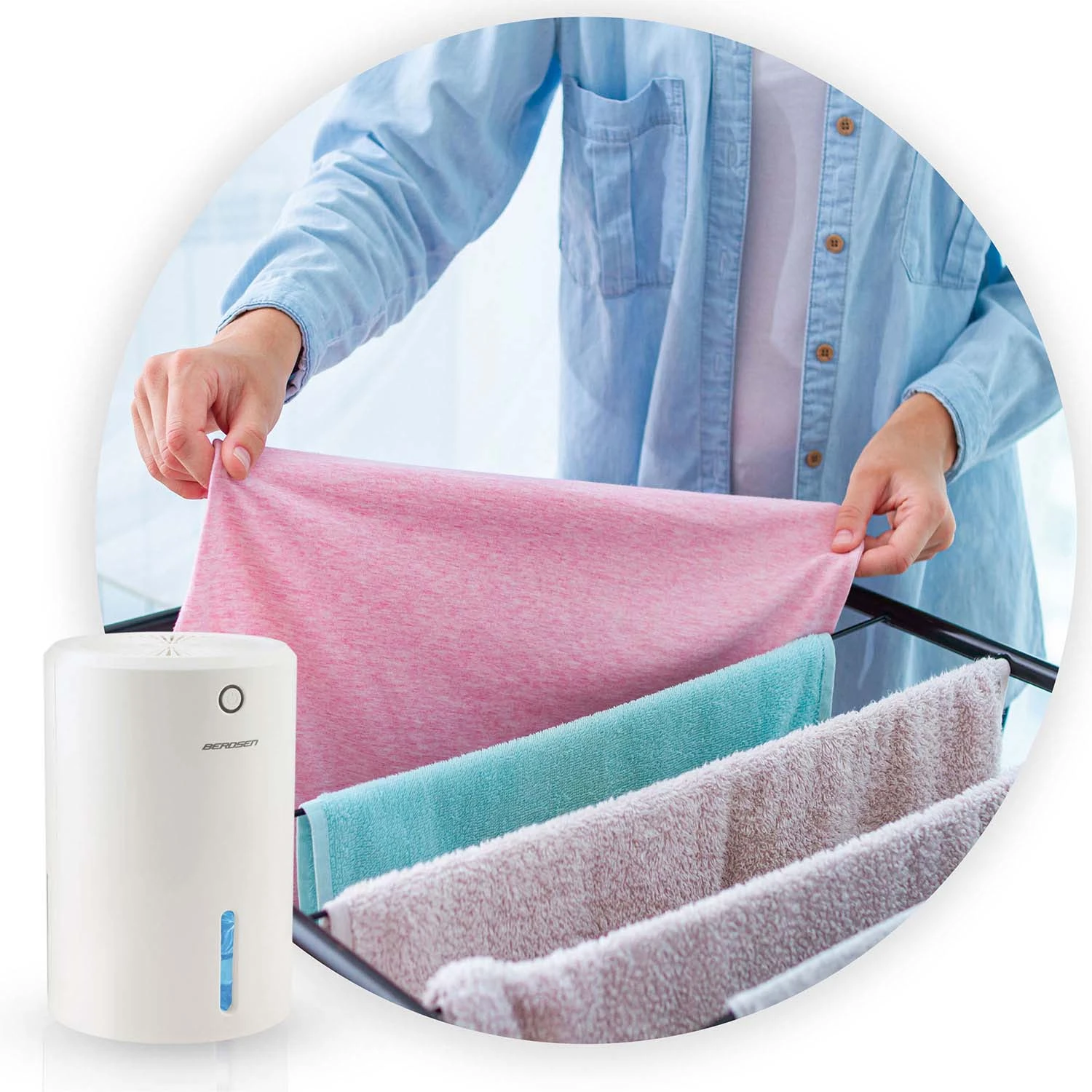 • Skrajša čas sušenja oblačil – razvlažilnik zraka intenzivno suši zrak in pospeši naravni proces izhlapevanja vlage iz perila.
