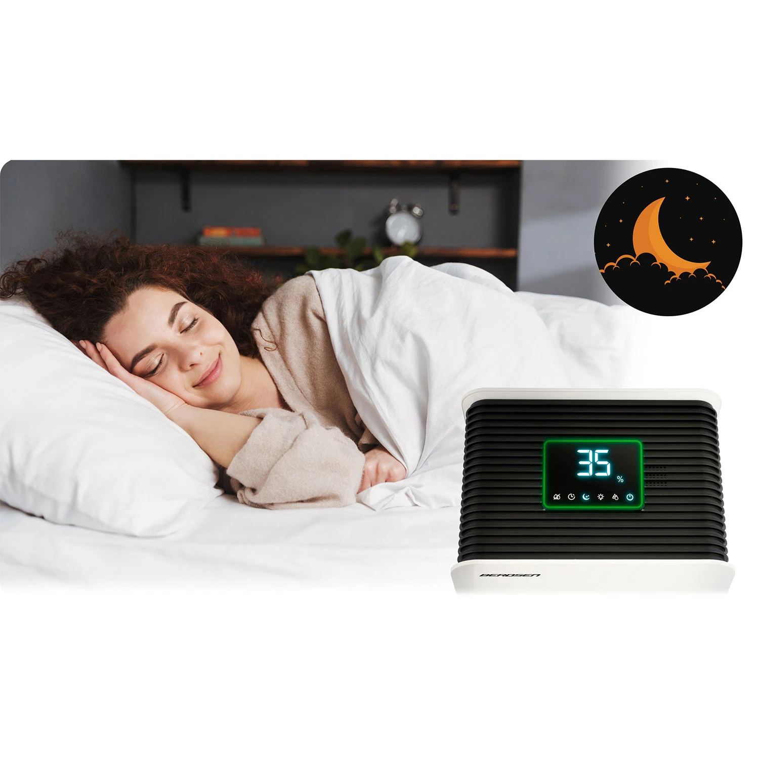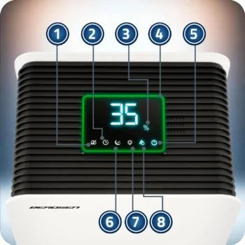 Sodobna, mehka nadzorna plošča na dotik , ki se nahaja na vrhu razvlažilnika, zagotavlja največje udobje uporabe.
