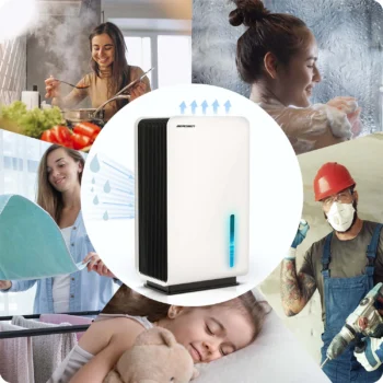 - Podpora v boju proti vlagi – razvlažilnik zraka omejuje rast plesni, gliv in bakterij.
