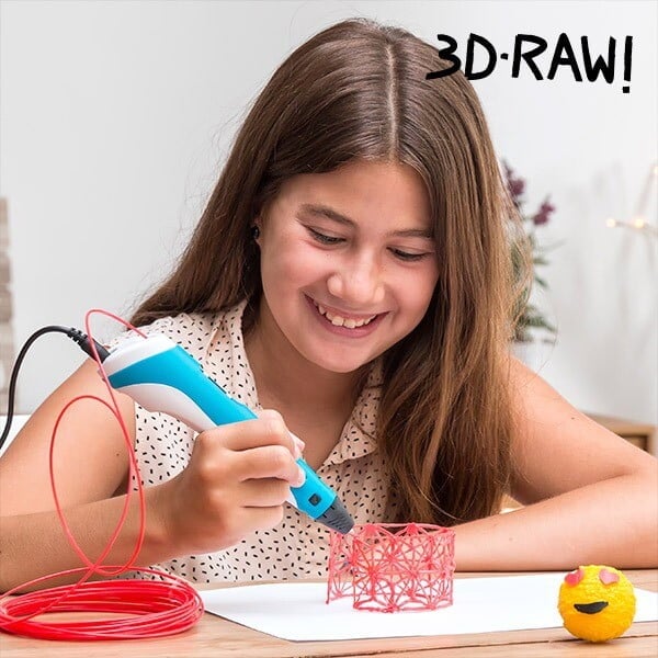 Ergonomsko pero 3D·RAW oddaja toplo plastiko, ki se ob stiku z zrakom posuši, tako da lahko ustvarite neverjetne figure, ki kljubujejo gravitaciji.