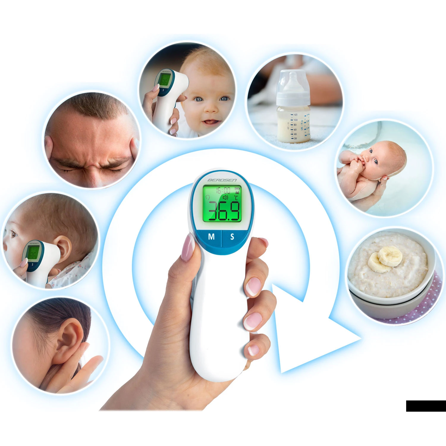 - Hitro in priročno merjenje: Brezkontaktni termometri vam omogočajo hitro preverjanje temperature brez telesnega stika, kar je priročno, zlasti za majhne otroke in starejše.