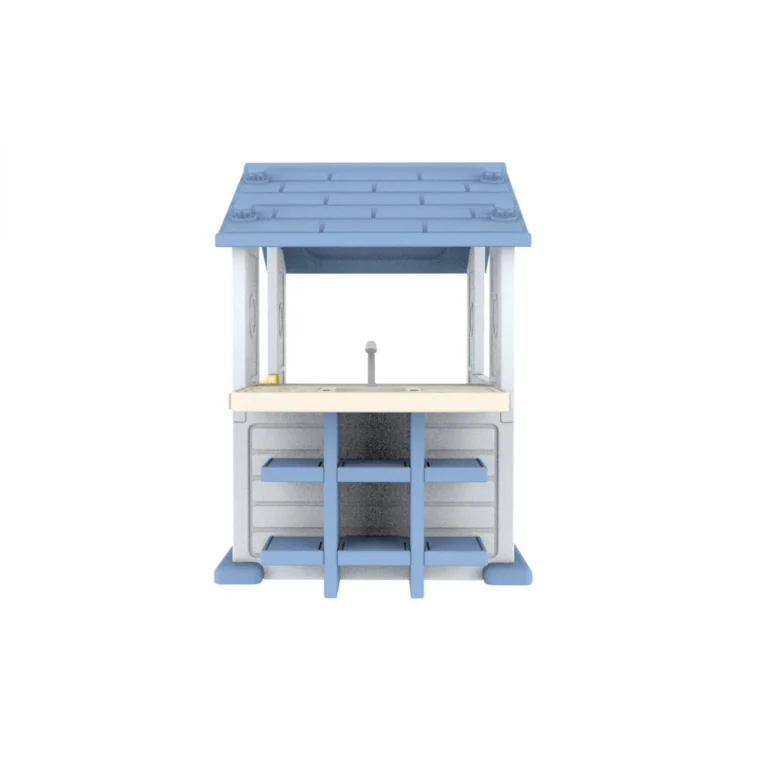 | Vsi elementi hiše so izdelani iz visokokakovostnega HDPE materiala. Gre za polietilen visoke gostote, ki se giblje od 0,942 do 0,965 g/cm3. HDPE je bolj fleksibilen material in bolj odporen na mehanske poškodbe v primerjavi z materiali, ki se uporabljajo v drugih tovrstnih konstrukcijah. Vse stene in komponente so izdelane iz dvojne plasti. To dodatno omogoča zapolnitev sten z vložkom iz peska ali agregata, kar zagotavlja stabilnost konstrukcije. Veliki elementi olajšajo montažo. | |