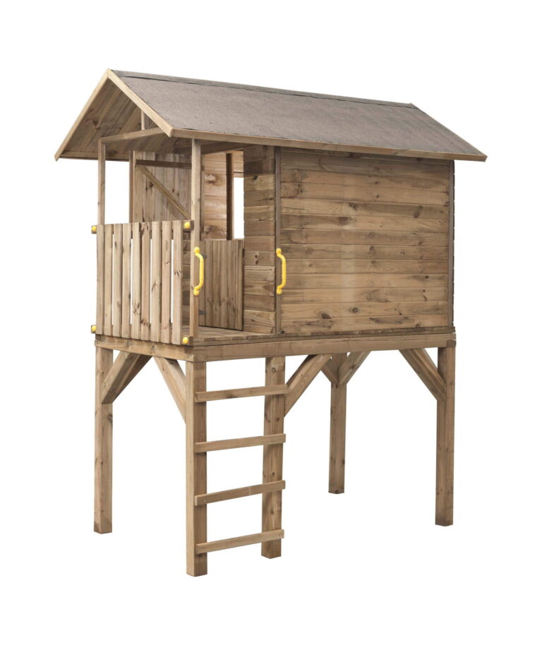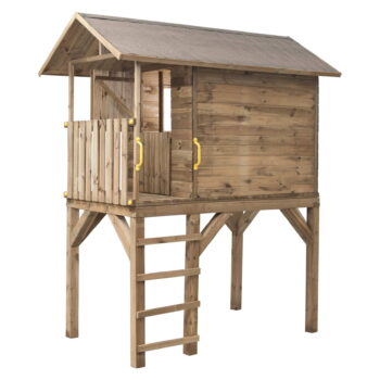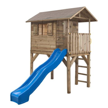 Trdna igralnica zagotavlja ure zabave, razširiti pa jo je mogoče tudi s 3-metrskim toboganom. Predhodno sestavljeni strešni in stenski elementi olajšajo montažo. Impregniran les s certifikatom FSC®, ki ne potrebuje nadaljnje obdelave. Streha je izdelana iz ruberoida. Priporočljiva je uporaba zemeljskih sider (niso priložena).