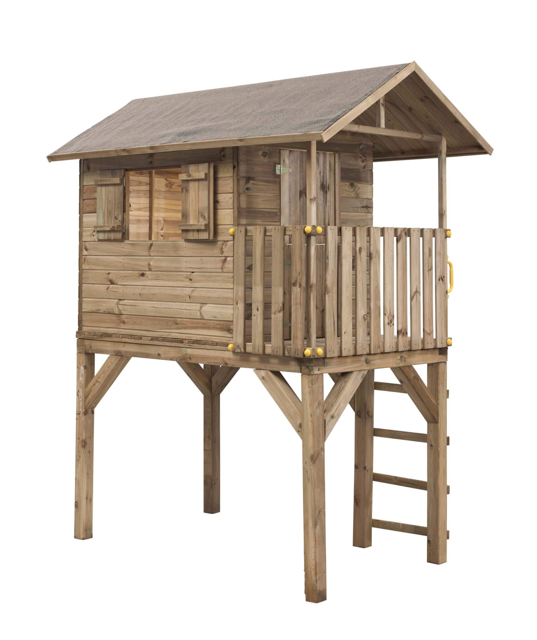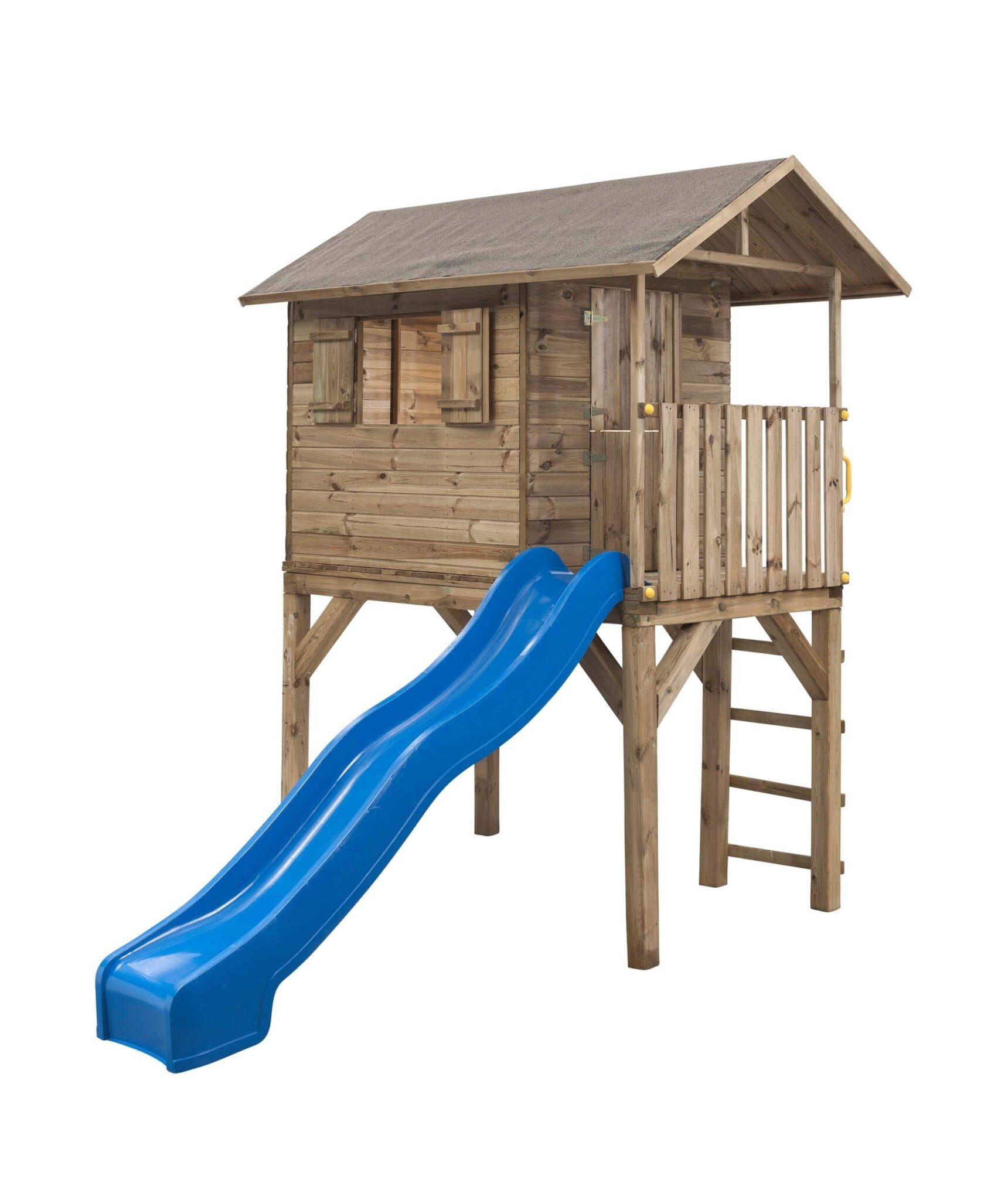 Trdna igralnica zagotavlja ure zabave, razširiti pa jo je mogoče tudi s 3-metrskim toboganom. Predhodno sestavljeni strešni in stenski elementi olajšajo montažo. Impregniran les s certifikatom FSC®, ki ne potrebuje nadaljnje obdelave. Streha je izdelana iz ruberoida. Priporočljiva je uporaba zemeljskih sider (niso priložena).