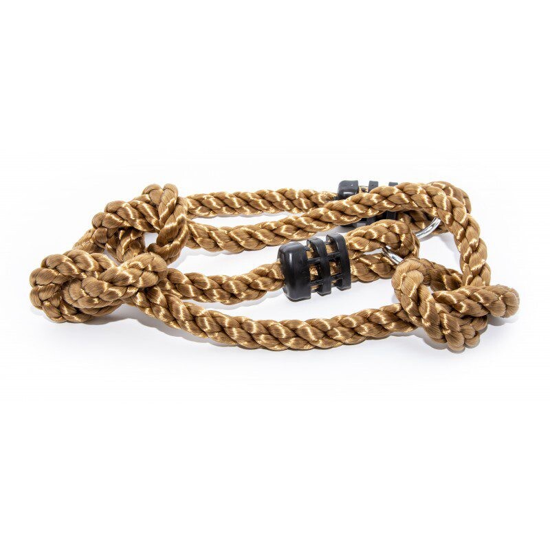 Plezalna vrv je odlična aktivna igrača za nemirne otroke. Namenjena je predvsem za vrt, da jo obesimo na drevo ali otroško igrišče, na primer, zagotovo pa bo všeč tudi otrokom doma v sobi. Zahvaljujoč stopnicam je primerna tudi za manjše otroke. Skupna višina vrvi je 200 cm. Največja nosilnost 150 kg.