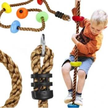 Plezalna vrv je odlična aktivna igrača za nemirne otroke. Namenjena je predvsem za vrt, da jo obesimo na drevo ali otroško igrišče, na primer, zagotovo pa bo všeč tudi otrokom doma v sobi. Zahvaljujoč stopnicam je primerna tudi za manjše otroke. Skupna višina vrvi je 200 cm. Največja nosilnost 150 kg.