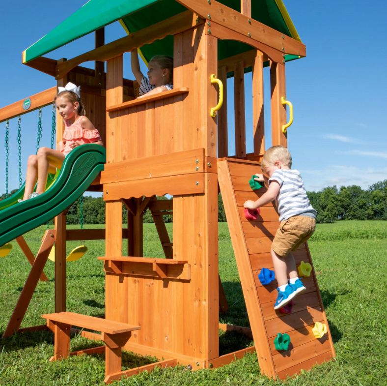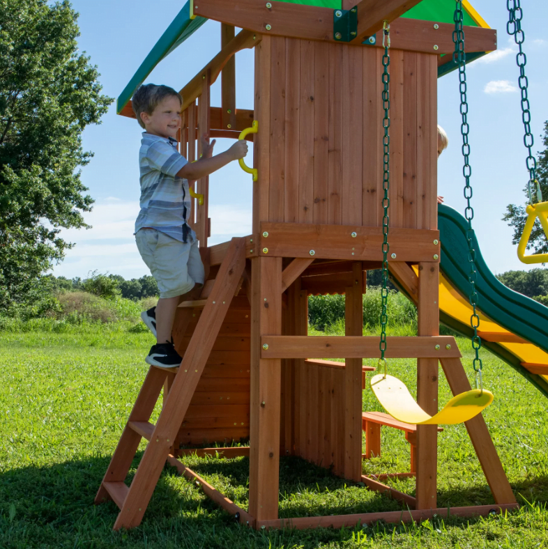 Dovoljenje za odkrivanje na dvorišču Enostavna montaža s podrobnimi fizičnimi navodili Pomoč pri montaži prek aplikacije BILT: 3D navodila https://biltapp.link/aKd8 ♻️ Impregniran cedrov les, kovinski elementi s plastično prevleko Odporno na vremenske vplive Svet otroške zabave na vašem dvorišču