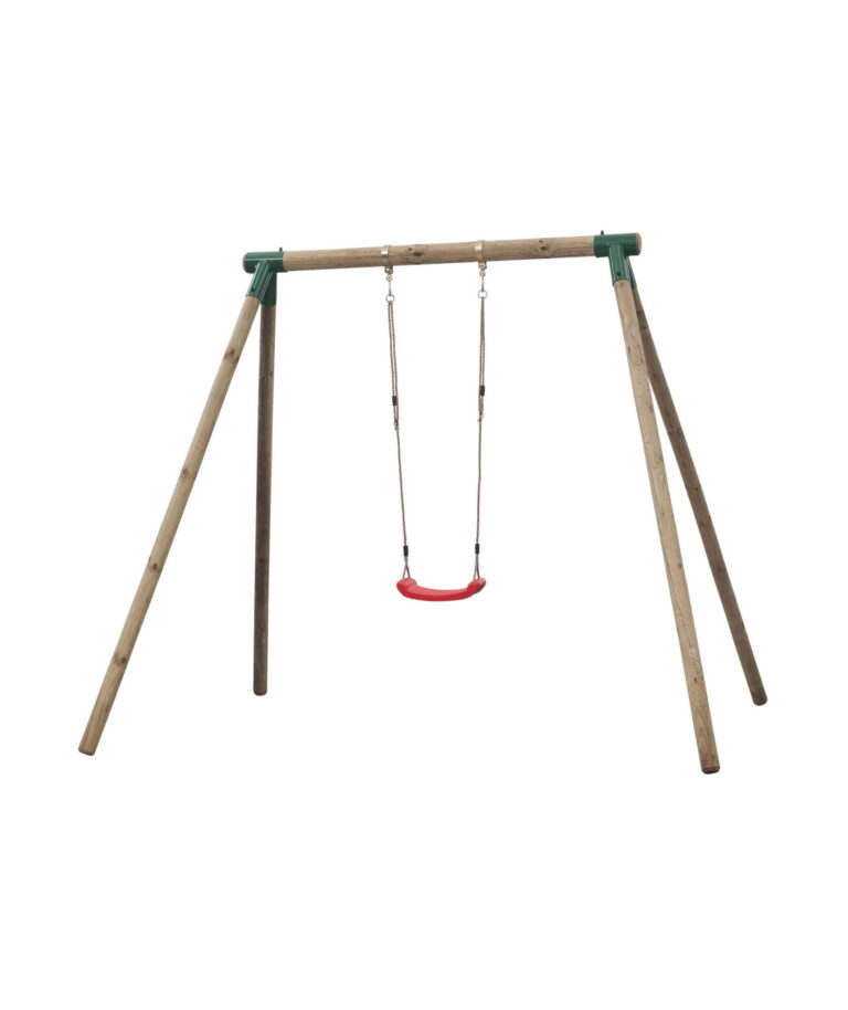 Enojna gugalnica iz trdno impregniranega lesa s certifikatom FSC®, ki bo zdržal leta. Lesa ni treba obdelovati. Zahvaljujoč impregnaciji pod pritiskom je dvojna gugalnica za otroke na ogrodju odporna na neugodne vremenske razmere – dež, sneg, veter ter nizke in visoke temperature. Poleg tega se dobro spopada z UV-žarki, ne da bi pri tem izgubila svoj lep videz. Sedež gugalnice je mogoče zamenjati z drugimi dodatki. Priporočljiva je uporaba zemeljskih sider (niso priložena).