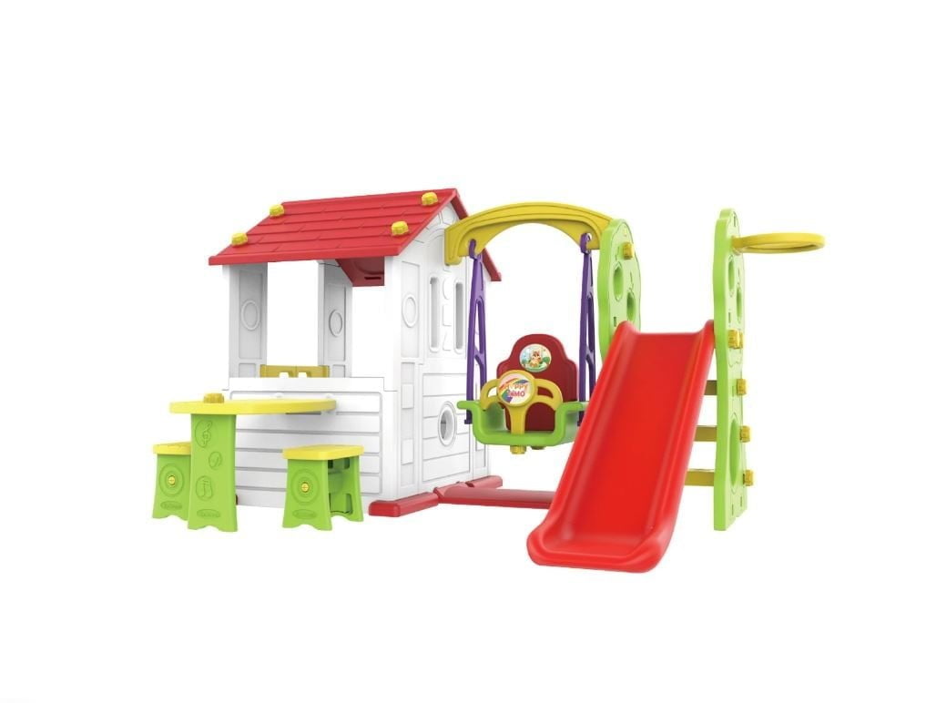 Otroška vrtna hišica z gugalnico - 3v1 Zabavna hišica