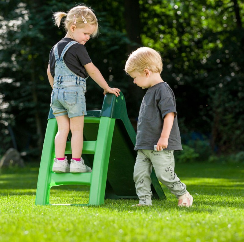 Tobogan Woopie velikosti 116 cm, ki bo zagotavljal varno in odlično zabavo na vrtu, dodatna atrakcija pa je možnost priključitve vodnega tuša za spust. Široko podnožje zagotavlja stabilnost tobogana. Zahvaljujoč uporabi visokih drsnih sten in zaobljenih robov je tobogan varen za manjše otroke. Značilnosti: dolžina drsenja – 116 cm široko podnožje – tobogan je izjemno stabilen. visoke drsne stene in zaobljeni robovi – varni za manjše otroke možnost priključitve vrtne cevi – funkcija tobogana