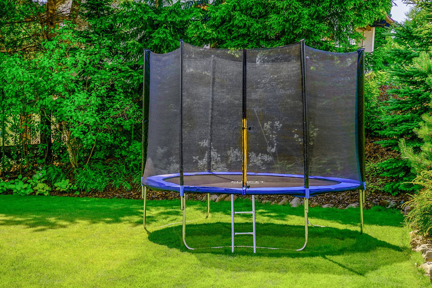 Največja nosilnost: 130 kg. Priložena varnostna mreža in lestev. Certifikat TUV in GS. Skakalna podloga iz najkakovostnejših materialov; država porekla ZDA. OPOMBA: Samo za uporabo na prostem. Priporočena starost: 3+. Zaščitite trampolin pred slabim vremenom/zimo (minus) in drugimi zunanjimi dejavniki. Zložite in shranite dele (stebričke, mrežo, lestev), ko jih dalj časa ne uporabljate (izven sezone). Očistite z vodo (blagim milom) in krpo iz mikrovlaken. cistimoskladiste25