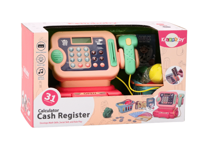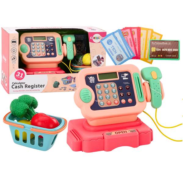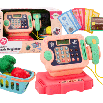 Blagajna je opremljena z digitalnim zaslonom, ki otrokom omogoča izvajanje osnovnih matematičnih operacij, kot so seštevanje, odštevanje, množenje in deljenje. Zahvaljujoč temu ima igrača ne le zabavno, temveč tudi izobraževalno funkcijo, saj otrokom pomaga razvijati matematične in logične spretnosti na dostopen in zabaven način. Dodatna prednost blagajne so zvočni in svetlobni učinki, ki spremljajo vsako transakcijo. Otroci lahko slišijo značilne zvoke skeniranja izdelkov, kar še poveča realizem igre. Blagajna ima tudi praktičen predal, ki je idealen za shranjevanje priloženih kovancev in bankovcev. Zahvaljujoč temu lahko otroci vzdržujejo red, kar jih uči organizacije. Celoten komplet je zasnovan z mislijo na varnost in udobje mladih uporabnikov, kar jim zagotavlja veliko ur ustvarjalne in poučne zabave. Blagajno napajata 2x 1,5V AA bateriji, ki nista vključeni v komplet. Dimenzije blagajne: 22 cm x 16 cm x 13,5 cm Velikost paketa: 33 cm x 20 cm x 16 cm