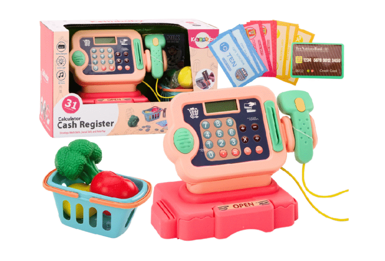 Blagajna Fisky za otroke je odlična igrača, ki otrokom omogoča simulacijo nakupovalnega procesa in jih na zabaven in poučen način uvaja v svet nakupovanja in financ. Komplet vsebuje privlačno košaro, napolnjeno z različnimi izdelki, ki jih otroci lahko izbirajo in skenirajo s pomočjo bralnika. Zahvaljujoč temu imajo otroci možnost biti v vlogi kupca in prodajalca, kar razvija njihovo domišljijo in socialne veščine. Da bi bila zabava čim bolj realistična, komplet vsebuje tudi bankovce, kovance in kreditne kartice. Zahvaljujoč tem dodatkom lahko otroci posnemajo resnične plačilne transakcije, hkrati pa se učijo šteti denar, kar je odlična priložnost za razvoj matematičnih veščin v praksi.