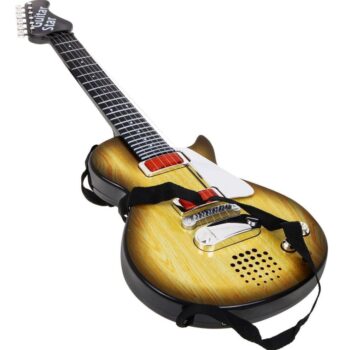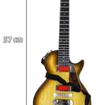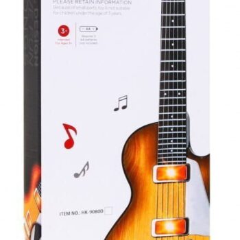 Edinstvena električna kitara za bodočega kitarista ali kitaristko. Zaradi majhnih dimenzij se popolnoma prilega triletnemu otroku. Prisotnost glasbe v otrokovem razvoju ima vsekakor pozitiven učinek. Talent, odkrit v tako zgodnji starosti, ima možnost, da se v prihodnosti bistveno razvije, zato tega trenutka ne smete zamuditi. Kitara je opremljena s 6 kovinskimi strunami in trakom, ima 2 načina delovanja. Prvi način omogoča predvajanje že pripravljene rock glasbe v ozadju. Način 2 je za igranje (ob dotiku strune oddajo zvok). Igrača ima na kitaro pritrjene slušalke z mikrofonom. Igrača je namenjena otrokom od 3. leta starosti in ima certifikat CE. Igračo napajajo 3 x AA baterije (niso priložene). Vsebina kompleta – kitara s trakom, – slušalke z mikrofonom. Dimenzije – kitara približno 57 cm x 20 cm x 3 cm, – embalaža približno 58 cm x 21 cm x 6 cm najboljša božična darila adventna promocija