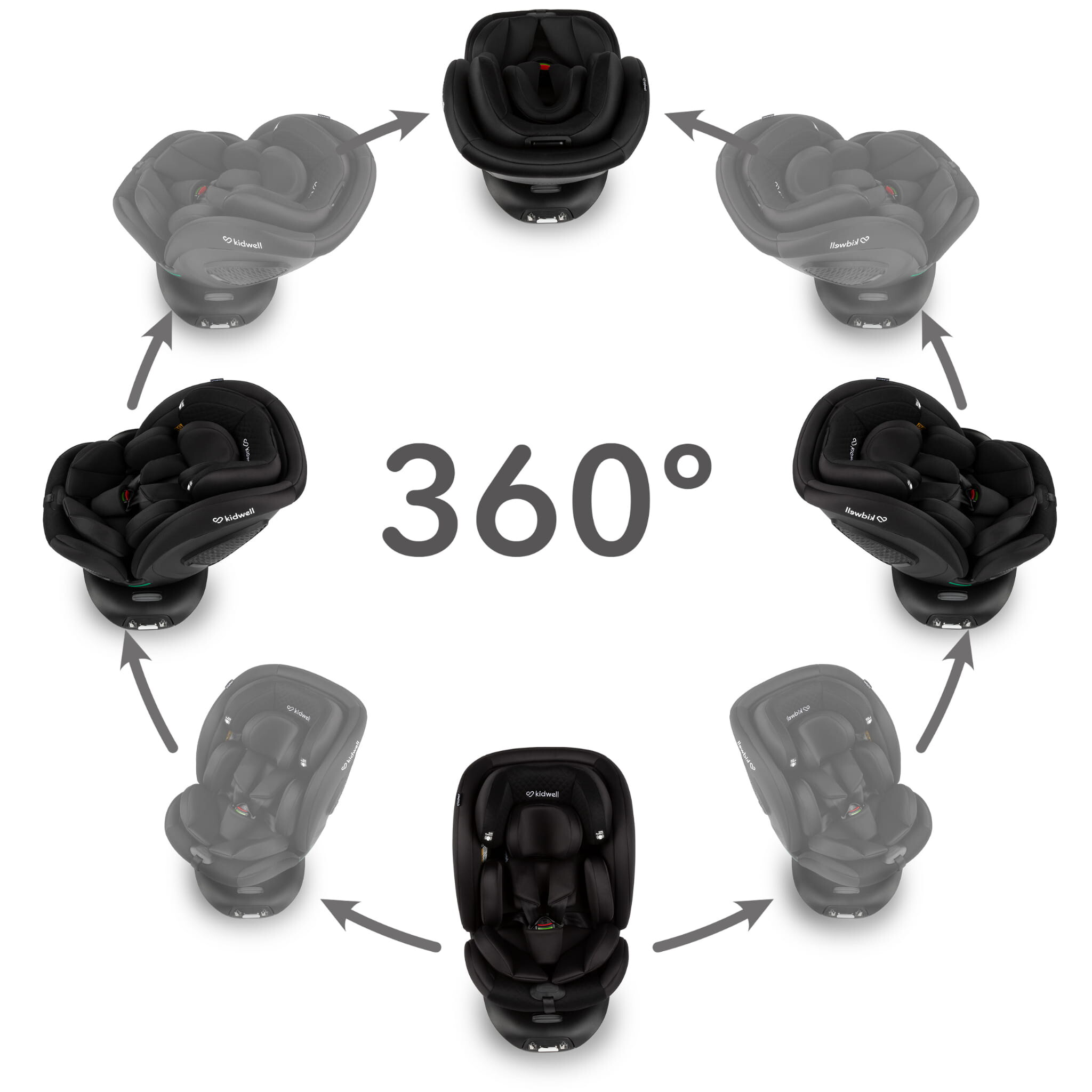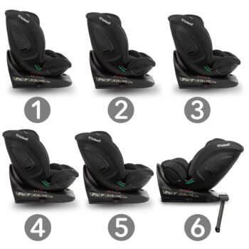 Funkcija vrtenja omogoča enostavno nastavitev sedeža naprej ali nazaj ter priročno vstavljanje in izstavljanje otroka. Za dodatno varnost je priporočljivo, da manjše otroke prevažate v ležečem položaju.