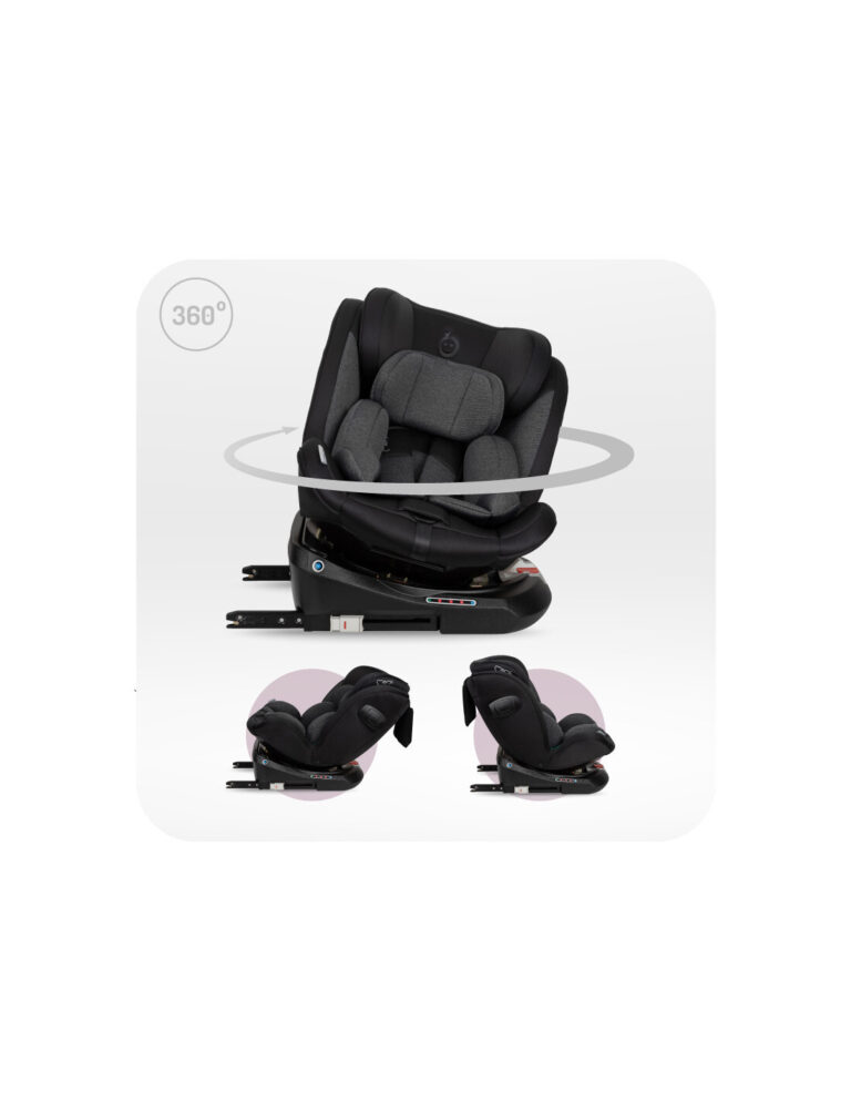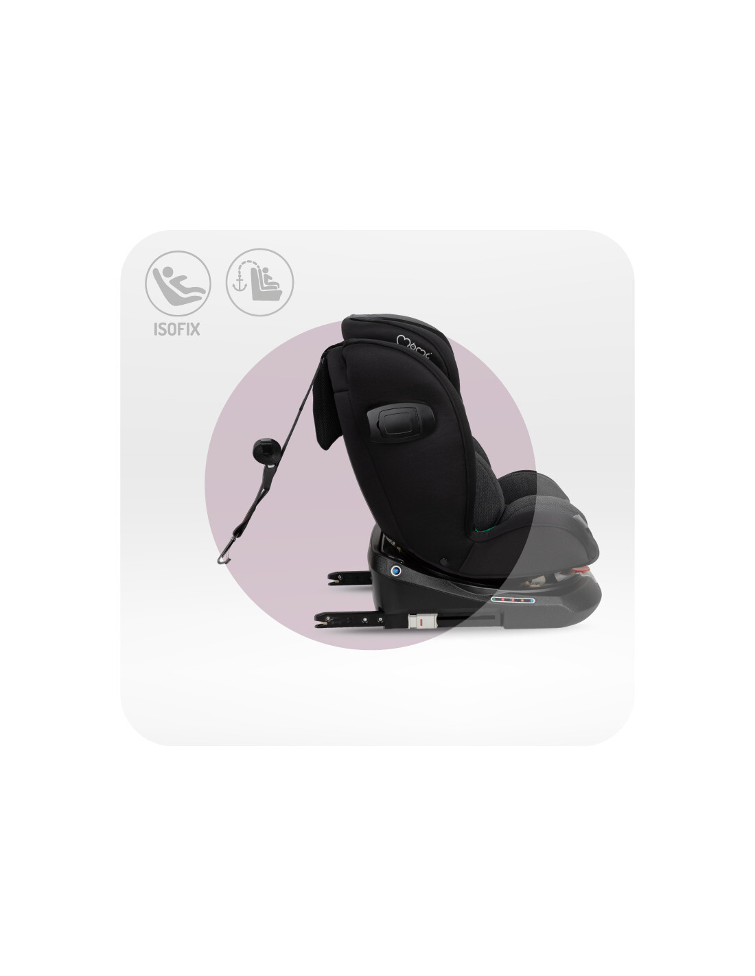 • 360° vrtljiva osnova: Omogoča enostavno namestitev otroka v sedež in vožnjo v obe smeri – obrnjen nazaj (RWF) za otroke do 105 cm višine in obrnjen naprej (FWF) za starejše otroke.
