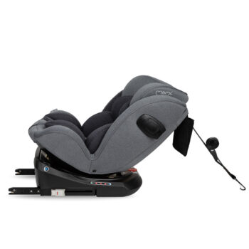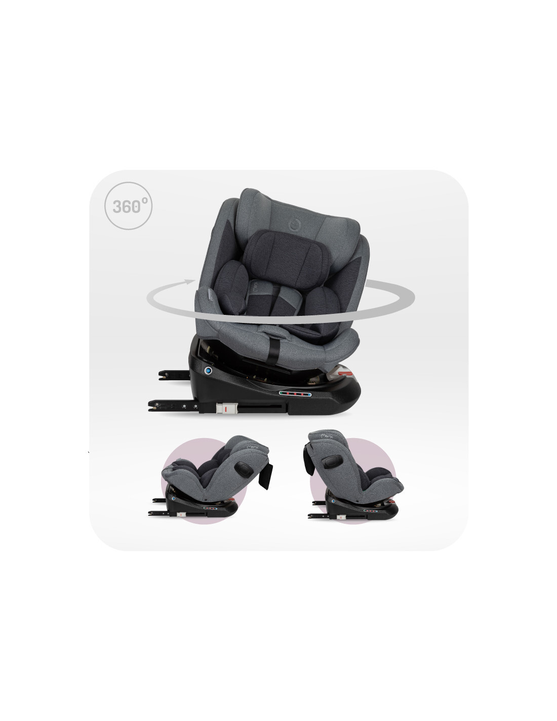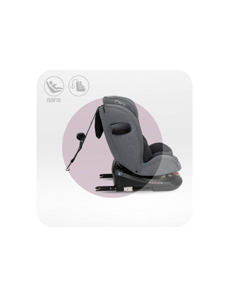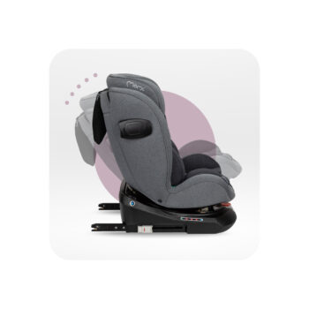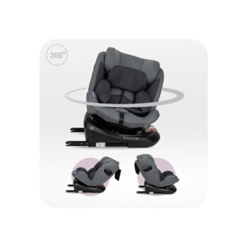 - 360° vrtljiva osnova: Omogoča enostavno namestitev otroka v sedež in vožnjo v obe smeri – obrnjen nazaj (RWF) za otroke do 105 cm višine in obrnjen naprej (FWF) za starejše otroke.