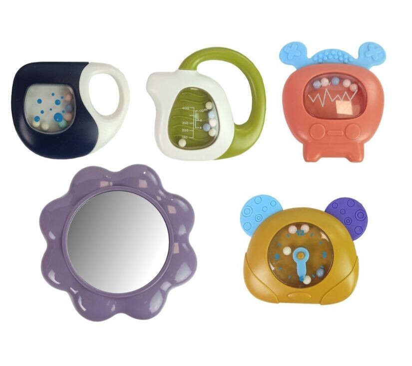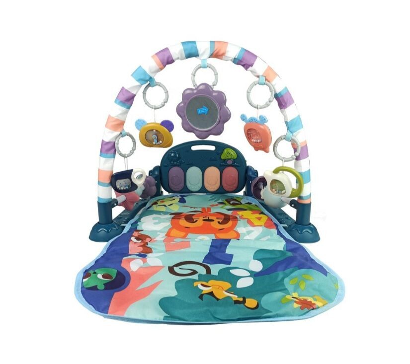 Podloga za dojenčke s penastimi ropotuljicami. Podloga lahko spremlja otroka že od prvih dni njegovega življenja in podpira njegov razvoj. Zato se splača priskrbeti igrače, ki bodo igro naredile varno in zabavno. Barvite grafike in vzorci bodo pomagali razviti otrokov vid, obešalni elementi pa bodo razvili funkcijo prijemanja, hkrati pa bodo vzbudili otrokovo radovednost. Živahne barve in vzorci bodo pritegnili pozornost tudi najbolj nemirnih dojenčkov. Komplet vsebuje klavir na baterije, s pritiskom na tipke pa boste slišali vrsto zvokov, ki prihajajo iz zvočnikov. Nad njim visijo različni zvončki v obliki ure in televizijski sprejemnik z gumijastimi vrhovi. Elementi kompleta: – podstavek – ogledalo – klavir – ropotuljice Dimenzije zloženega polnega podstavka: 72 cm x 48 cm x 38 cm Višina podstavka približno 35 cm Dimenzije klavirja: 30 cm x 18 cm x 4 cm Dimenzije ene ropotuljice: približno 10 cm x 8 cm x 3 cm Dimenzije škatle: 47 cm x 30 cm x 9 cm Podstavek je namenjen dojenčkom takoj po rojstvu. Komplet ima certifikat CE in je skladen z EN 71. Pakiran je v kartonski škatli, zaradi česar je idealno darilo. Klavir napajajo tri priložene baterije AA 1,5 V.