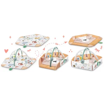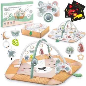 - Interaktivni elementi : Vgrajeni zvočni in svetlobni učinki, ki se odzivajo na dotik, spodbujajo otrokovo radovednost in interakcijo.