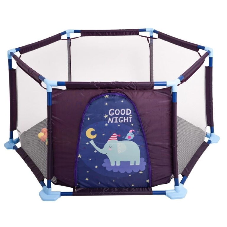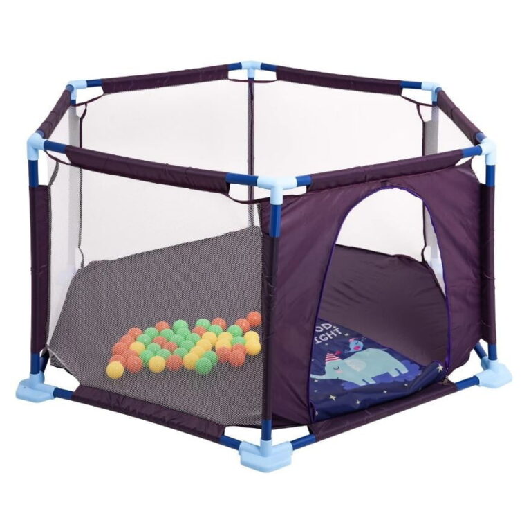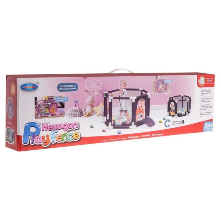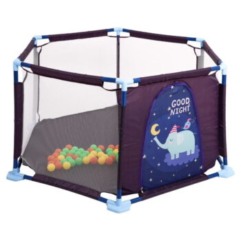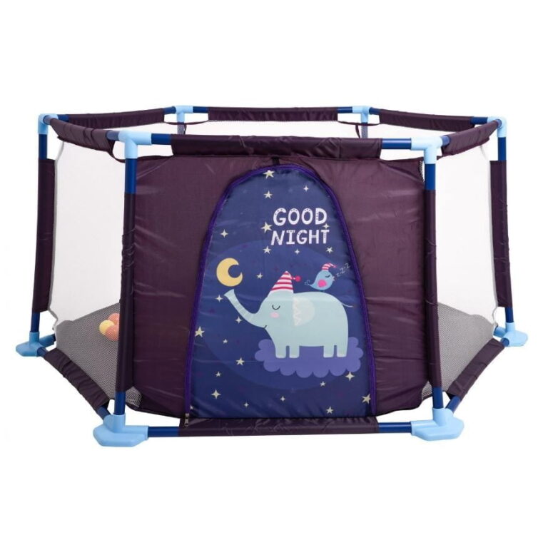 Inovativna zasnova vključuje 5 mrežastih sten, skozi katere lahko otrok opazuje zunanji svet. Zahvaljujoč vhodu z zadrgo lahko otrok prosto vstopa in izstopa. Trden okvir zagotavlja stabilnost in vzdržljivost, hkrati pa je lahek in enostaven za prenašanje, tako da lahko otrok uživa v varni igri tako doma kot na prostem . Stajici je priloženih 40 pisanih žogic , ki bodo popestrile zabavo in pritegnile otrokovo pozornost.
